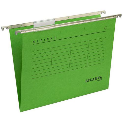 Az Alzicht függőmappái átlátszó címkével vannak ellátva, amely elölről és felülről is könnyen olvasható. Megerősített, ónozott és szegecselt fém akasztóhorgokkal rendelkeznek, szürke nejlon végekkel a szekrényekben való sima vezetés érdekében. Az elülső és hátsó részen előre vágott hornyok találhatók a rögzítőmechanizmus számára, 80 mm-es távolsággal. Az alap öt hajtogatásnak köszönhetően bővíthető, ami lehetővé teszi még nagyobb dokumentumok tárolását. A mappák strapabíró, 225 g/m² súlyú, klór- és savmentes Colorkraft kartonból készülnek, fekete nyomtatással. Megfelel a Benelux országokban érvényes szabványoknak.