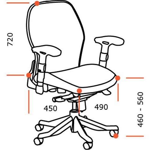 Az Amos irodai szék alkalmas otthonra és íróasztalokhoz. Az ellensúly állítási lehetőséggel bíró hintamechanika, az ergonomikusan formázott ülőkagyló, a magasabb háttámla és a karfák növelik az ülés kényelmét. A mechanika rögzítése alaphelyzetben lehetséges. A szerkezet stabilitásáról a műanyag csillagtalp és a puha padlóra, pl. szőnyegre vagy PVC-re való kerekek gondoskodnak. Az ülés magassága gázrugóval a felhasználó igényeihez igazítható.