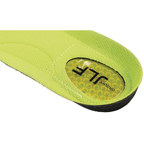 Anatómiai hőformázott talpbetét az optimális lábtartásért. A zselés talpbetét tompítja a sarokütéseket. Az S3F® bevonat megakadályozza a mikózisokat okozó baktériumok vagy gombák elszaporodását. A szellőző talp komfortérzetet biztosít a magas izzadságfelvételnek köszönhetően. Antisztatikus.