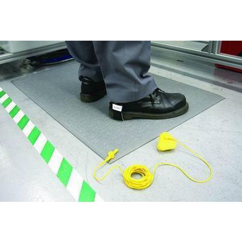 - A szőnyeg elvezeti a felgyülemlett elektrosztatikus energiát a dolgozó testéről, ezzel megakadályozva a finom elektronikai termékek elektromos kisülések által okozott sérülését. Álláskönnyítő szőnyegként is szolgál. A csomagolás része egy földelő tartozék a szőnyeg hatékonyságának növelésére, és az elektromos hálózatba történő csatlakoztatására.