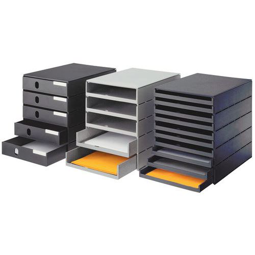 Kapható nyitott vagy zárt kihúzható fiókkal. Styroval ökológiai iratmodulok 5 fiókhoz, keskeny külső méretekkel. Szekrényekhez és polcokhoz alkalmas. Válasszon környezetbarát tárolást.