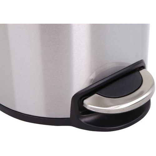 Kör alakú szemetes műanyag fedéllel és rozsdamentes acél alapról felemelt pedállal. Műanyag béléssel és csendes zárással.