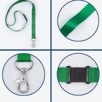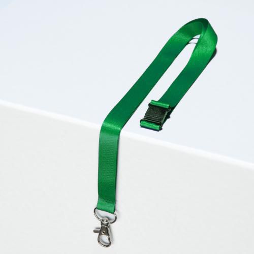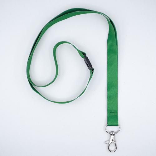 Újrahasznosított műanyag palackokból készült nyakpántok. Lapos szövetzsinórok szatén bevonattal, kényelmes viselet. Fém forgókampó karabinerrel. Biztonsági csat, amely túlzott húzás esetén kioldja a zsinórt.