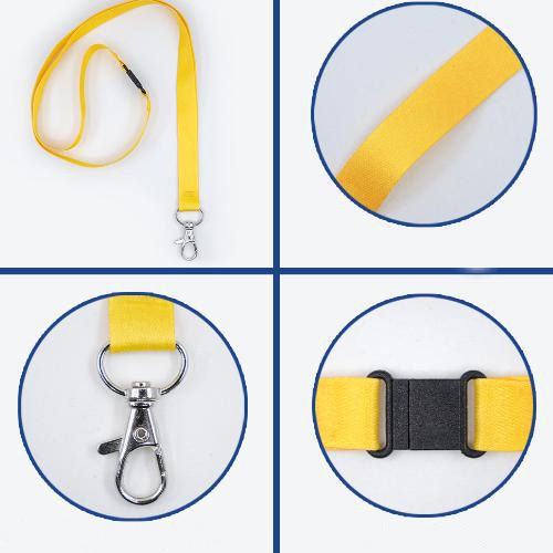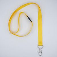 Újrahasznosított műanyag palackokból készült nyakpántok. Lapos szövetzsinórok szatén bevonattal, kényelmes viselet. Fém forgókampó karabinerrel. Biztonsági csat, amely túlzott húzás esetén kioldja a zsinórt.