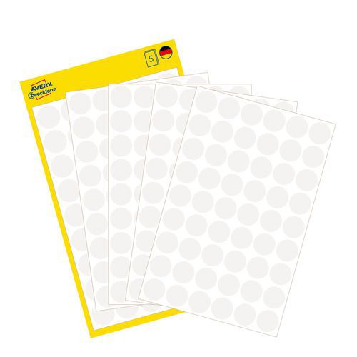 Avery Zweckform kerek öntapadós címke, papír, átmérő: 12 mm, fehér Avery Zweckform kerek öntapadós címke, papír, átmérő: 12 mm, fehér