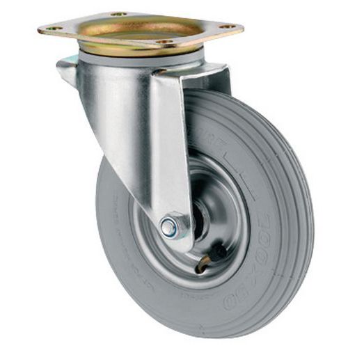 Forgófej dupla golyóscsapággyal és portömítéssel, könnyű karbantartás és egyenletes forgás. Ideális egyenetlen felületekre, mint például kavics, szennyeződés vagy fű. Forgó kerekek acél karikával, felfújható gumiabronccsal és horganyzott acél tartóval.