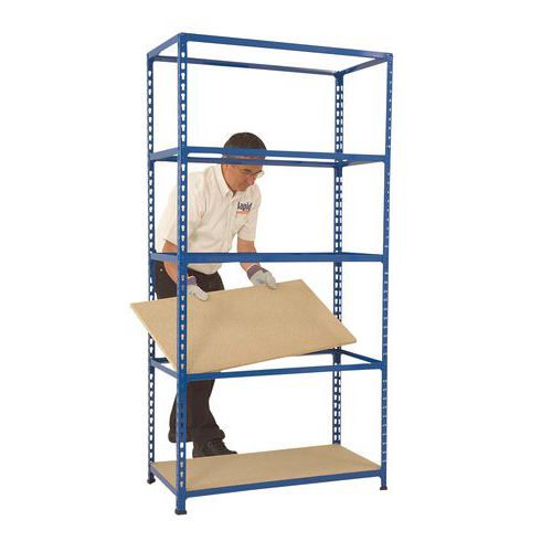 A Basic csavarmentes polcállványok pénzügyileg előnyös megoldást jelentenek háztartásokba, irodákba, garázsokba vagy műhelyekbe. A 40 mm-es raszterben állítható polcok minőségi farostlemezből készülnek. Az összekötő csapok segítségével a polcállványok összekapcsolhatók. Műanyag védőtalpak. Acéllemez szerkezet, vastagsága 0,7 mm. TÜV tanúsítvány: A TÜV tanúsítvánnyal rendelkező polcállványok névleges teherbírásuk másfélszeresére vannak tesztelve. Felületkezelés : Horganyzott felület Max. polcterhelés (kg) : 175 Szerelés : Szereléshez