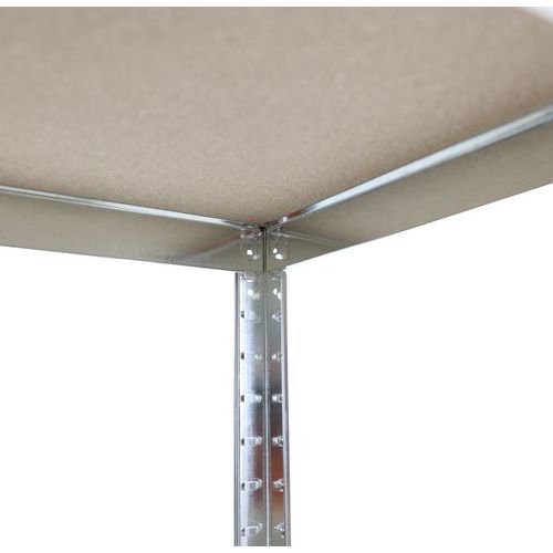 A Basic csavarmentes polcállványok pénzügyileg előnyös megoldást jelentenek háztartásokba, irodákba, garázsokba vagy műhelyekbe. A 40 mm-es raszterben állítható polcok minőségi farostlemezből készülnek. Az összekötő csapok segítségével a polcállványok összekapcsolhatók. Műanyag védőtalpak. Acéllemez szerkezet, vastagsága 0,7 mm. TÜV tanúsítvány: A TÜV tanúsítvánnyal rendelkező polcállványok névleges teherbírásuk másfélszeresére vannak tesztelve. Szerelés : Szereléshez Felületkezelés : Horganyzott felület Max. polcterhelés (kg) : 175 kg