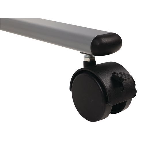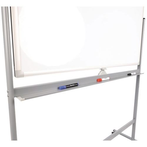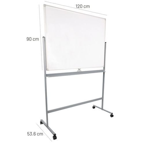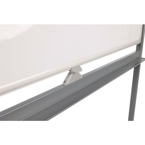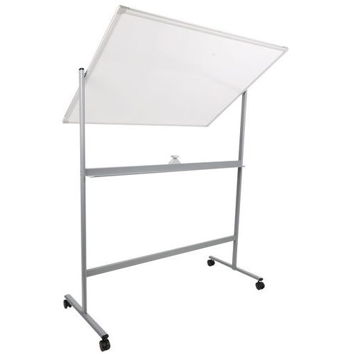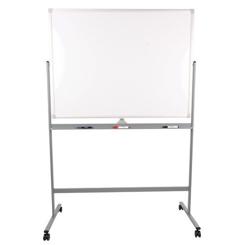 Mozgatható forgó tábla kétoldalt feliratozható mágneses felülettel. A táblalemez lakkozott acélból van, eloxált alumínium kerettel ASB-éllel. Száraz tisztítás mágneses törlő vagy törlőrongy segítségével. A tábla vízszintesen elforgatható és automatikusan rögzül. Az állvány fékezett görgőkkel rendelkezik a pozíció rögzítéséhez.