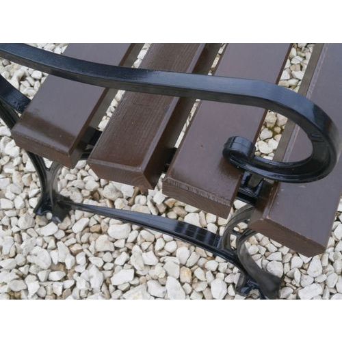 Kültéri formázott fapad játszótérre, parkba stb. Lucfenyő lécek különböző színekben. Dekoratív, fekete színű fém szerkezet.