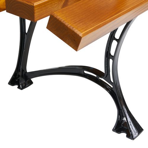 Kültéri formázott fapad játszótérre, parkba stb. Lucfenyő lécek különböző színekben. Dekoratív, fekete színű fém szerkezet.