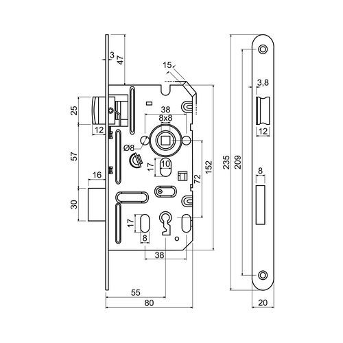Behordó zárak dosic kulcshoz, BB, 20mm