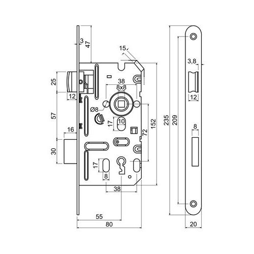 Behordó zárak dosic kulcshoz, BB, 20mm