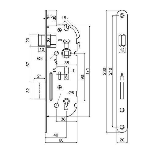 Behordó zárak dosic kulcshoz, BB, 20mm
