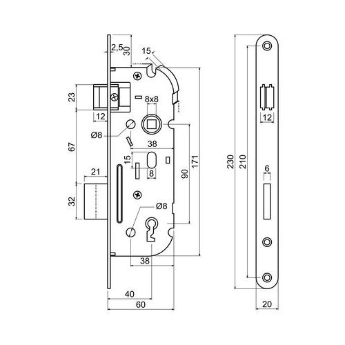 Behordó zárak dosic kulcshoz, BB, 20mm