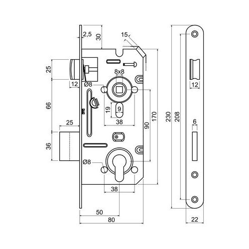 Behordó zárak hengerbetéthez, PZ, 22mm