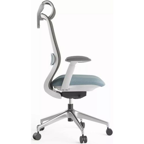 A BESSEL szék 4D-ben állítható karfákkal rendelkezik poliuretán borítással.
