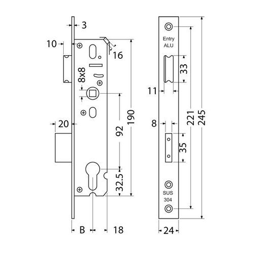 Horonyzár alumínium ajtókhoz, 45mm Horonyzár alumínium ajtókhoz, 45mm