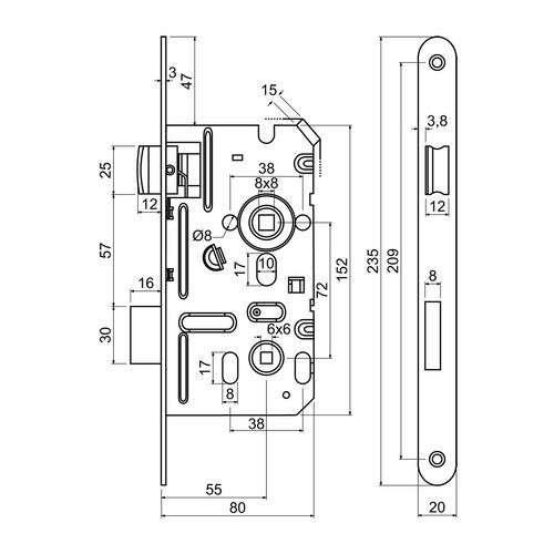 Bevésőzár WC fogantyúhoz, 20mm, bal, rozsdamentes Bevésőzár WC fogantyúhoz, 20mm, bal, rozsdamentes