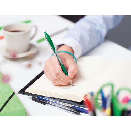 Stílusos golyóstoll gumi markolattal a kényelmes és egyszerű írásért. Újratölthető és visszahúzható, így nem hagy nyomot a zsebében vagy a táskájában. Látható tintaszint. Az integrált klipnek köszönhetően bárhová rögzítheti.
