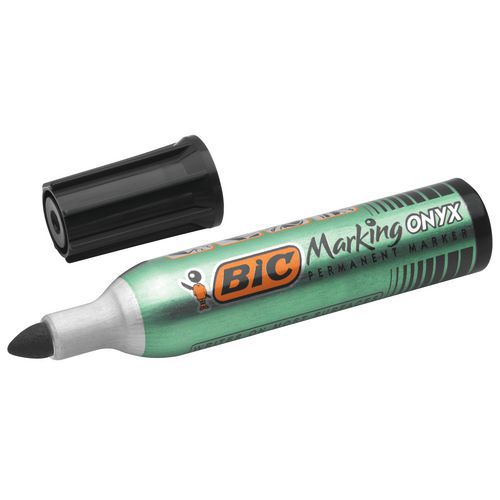 BIC Marking Onyx 1482 letörölhetetlen marker könnyen leolvasható a legtöbb felületen: üvegen, fán, műanyagon, fémen, kartonon. A széles golyós hegy ideális ipari és professzionális használatra, és tiszta és egyenletes vonalvastagságot biztosít. a mérgező tinta alkalmas kültéri jelölésekre , gyorsan szárad, nagyon átlátszatlan és fakulásálló. Ez a kis állandó marker intenzív kézi munkához készült, és nagyon erős fémtesttel rendelkezik.
