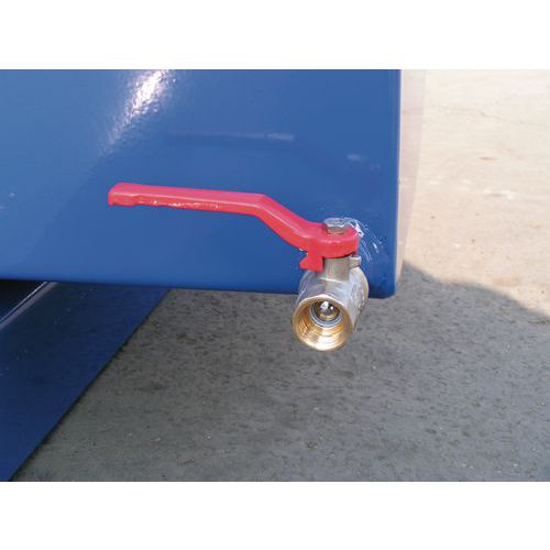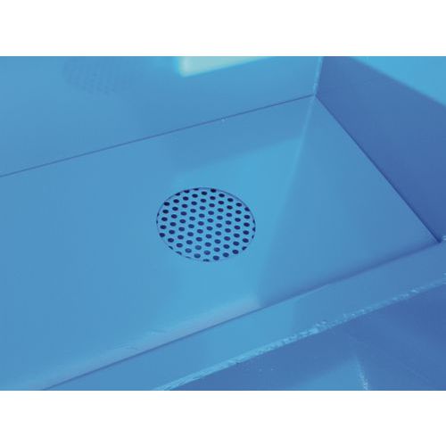 Billenő konténerek kieresztő csappal és dupla fenékkel hálóval a szilárd anyagok folyadékoktól való elkülönítéséhez. Négy színváltozatban. 3 mm vastagságú lemezszerkezet megerősített széllel a konténer körül. Acélzsineg segítségével a targoncavezető helyéről borítható ki. Kiborítás után az üres kád az eredeti helyzetébe áll és automatikusan rögzül. A konténert kiborításkor lánccal kell biztosítani a villákról történő nemkívánatos lecsúszás ellen. A lánc és az acélzsineg is a szállítás része. Poliamid görgő készlet vásárolható hozzá a könnyebb kezelésért.