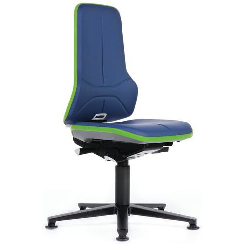 Bimos Neon műhelyszék siklókkal ellátott váza két elemből áll: az ülésszerkezetből, beleértve az alapot és a mechanikát, valamint a kivehető kárpitból.