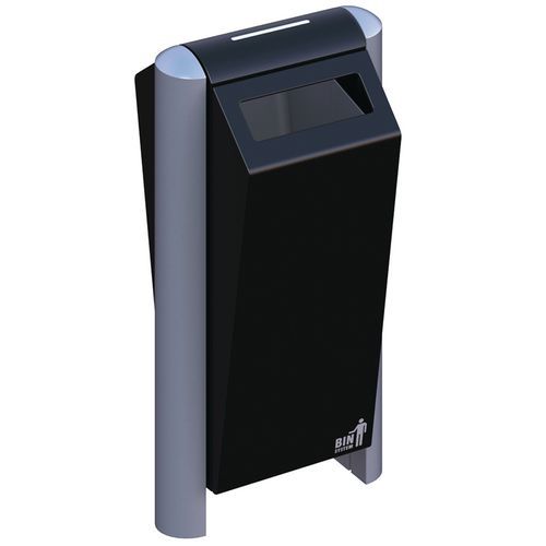 Kiváló minőségű, porszórtan horganyzott acélból készült, gyönyörű kialakítású kültéri hulladékgyűjtő, mindkét oldalán betétes nyílással.