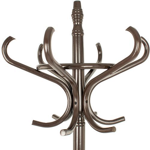 Elegáns retro stílusú fa kabáttartó. Felfordítható korona 12 kampóval. Nagyon stabil 4 csillag alakú lábon. Elhelyezett esernyőtartóval.