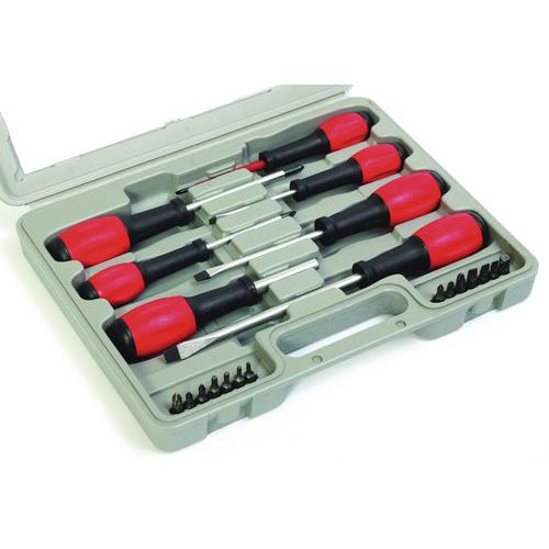 - Bit- és csavarhúzó készlet praktikus tokban. A készlet bites csavarhúzót, tizenhárom bitet, továbbá két philips kereszt és négy lapos csavarhúzót tartalmaz.
