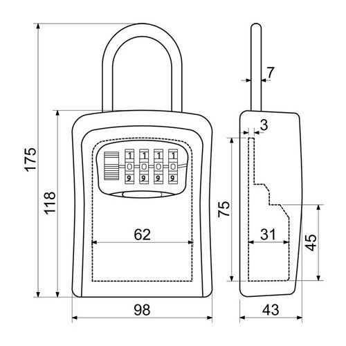 | Termék neve | Biztonsági acél doboz (letét) műanyag burkolatban a kulcsok tárolására |