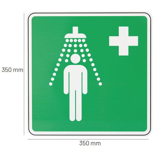 Ezek a biztonsági jelzések orvosi zuhany jelenlétére figyelmeztetnek. Jó anyagállóság – korrózióálló alumínium. A polimer laminálás megvédi az asztalokat a fizikai kopástól és kiszűri az UV-sugarakat. Kültéri vagy beltéri használatra. Gyártói garancia az ügyfélnek : 10 év