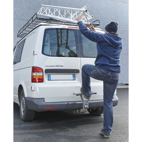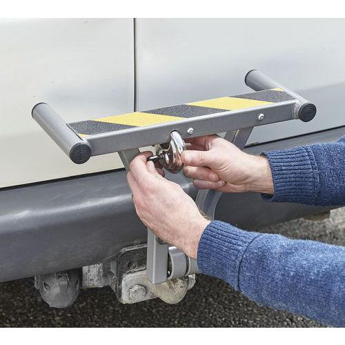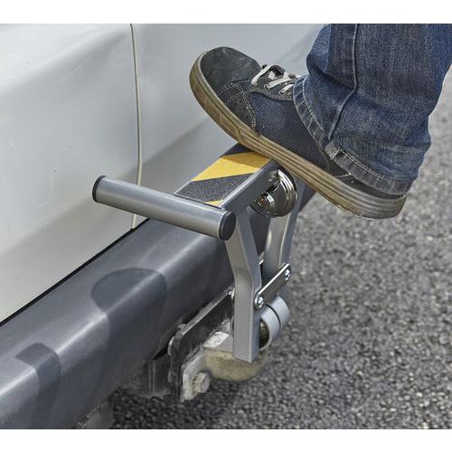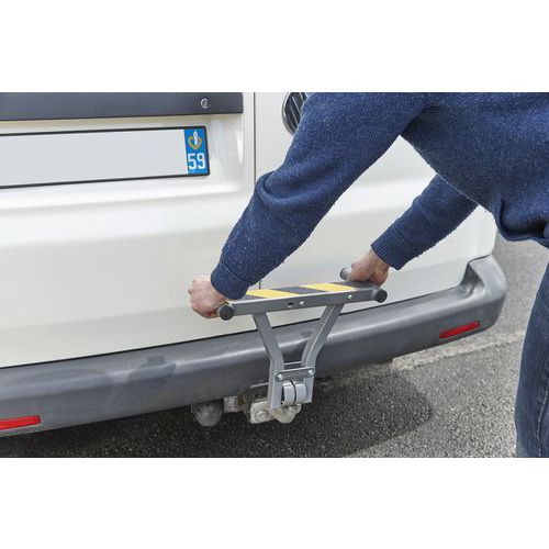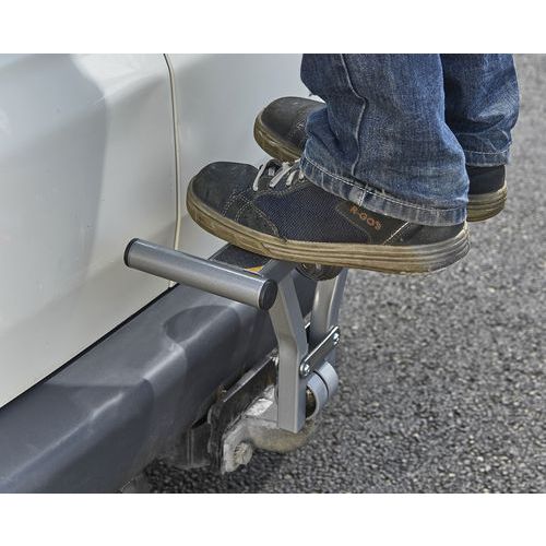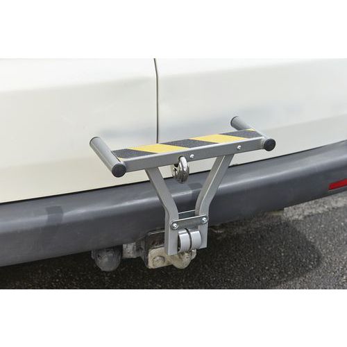 Haszonjárművek hátsó ajtajának nyitását blokkoló eszköz. Csúszásgátló felülettel ellátott lépcsőként is szolgál. Bármilyen típusú vonóhoroghoz csatlakoztatható.