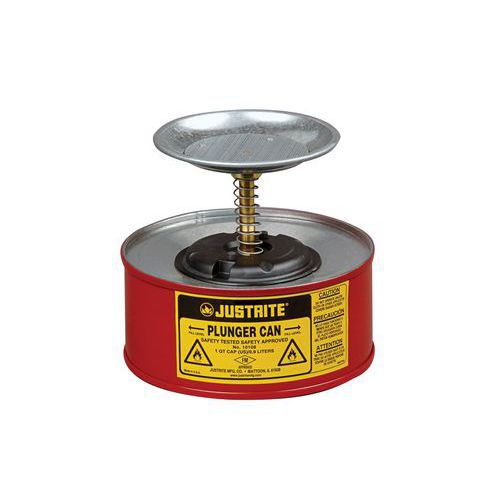 Biztonsági nedvesítők horganyzott acéllemezből a rongyok és törlőkendők biztonságos és gazdaságos nedvesítésére. A nedvesítő korlátozza a közvetlen érintkezést a tűzveszélyes anyaggal. A folyadékot a 128 mm átmérőjű nedvesítő tányérhoz szivattyú berendezés továbbítja. Tartozék perforált háló, mely gátolja a lángok terjedését. Az edények rendelkeznek FM és TÜV-tanúsítvánnyal is.