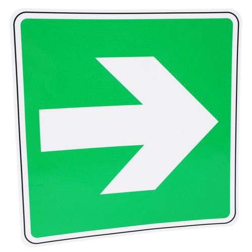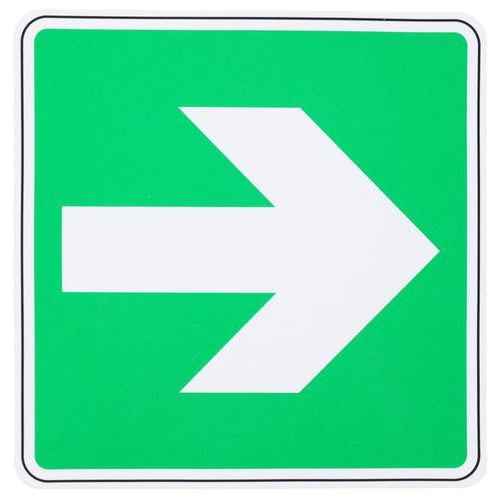 Kiürítési táblák nyíllal, amelyek vészhelyzet esetén követendő irányt mutatnak. Bármilyen sima, zsírtalanított és tiszta felülethez való ragaszkodáshoz. A polimer laminálás megvédi a táblát a fizikai kopástól, és kiszűri az UV-sugarakat.