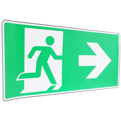 Biztonsági menekülési táblák, amelyek a vészkijárat irányát jelzik. A piktogram és a bal oldali nyíl kombinációja világos és pontos tájékoztatást ad vészhelyzet esetén a haladási irányról. Bármilyen sima, zsírtalanított és tiszta felületre kell ragasztani. . A polimer laminálás megvédi a jeleket a fizikai kopástól és kiszűri az UV sugarakat.