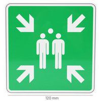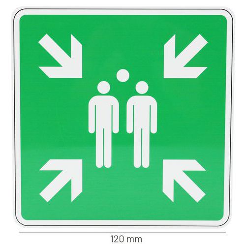 Biztonsági menekülési táblák, amelyek jelzik az emberek összegyűjtésének helyét az evakuálás során. A gyülekezőhely jobb megszervezést kínál az evakuáltak számára. Az anyag jó tartóssága – korrózióálló alumínium. A polimer laminálás megvédi a táblákat a fizikai kopástól és kiszűri az UV-sugarakat . Kültéri vagy belső használatra.