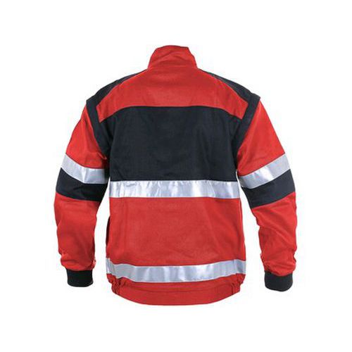 Férfi dungarees blúz, levehető ujjak elasztikus mandzsettával, fedett cipzárral és tépőzáras rögzítéssel, füles mellzsebekkel, cipzáras rejtett mellzsebekkel, egyoldalas zsebekkel, gumírozott derékkal az oldalán, fényvisszaverő csíkokkal. Méret: 46-64 Fényvisszaverő kiegészítők: Igen