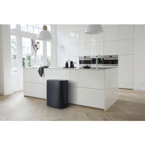 Nagyméretű hulladékgyűjtő Touch fedéllel a csendes záráshoz és könnyű használathoz, valamint egy béléssel felszerelve. A szemetes helytakarékos kialakítású. A nagyméretű betétnyílás praktikus és ergonomikus. A kivehető bélésnek köszönhetően a szemetes könnyen tisztítható. A szaggátló fedél megakadályozza a kellemetlen szagok távozását. A fogantyúknak köszönhetően könnyen mozgatható. A csúszásmentes talp védi a padlót és a helyén tartja a szemetest.