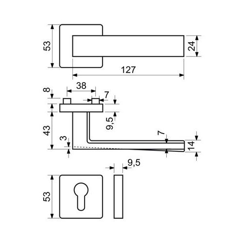 Acél rozetta szerkezet FIX IN rendszerben - a fogantyúk és a rozetták stabil csavarozása az ajtón keresztül. A kiálló anyák és vezető csavarok megakadályozzák a rozetta elfordulását. A felhasznált anyagok nagyfokú szilárdsággal és kopásállósággal rendelkeznek. Pontosan megmunkált élek.