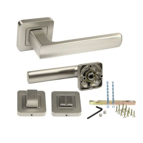 A felhasznált anyagok nagyfokú szilárdsággal és kopásállósággal rendelkeznek. Pontosan megmunkált élek. Acél rozetta szerkezet FIX IN rendszerben - a fogantyúk és a rozetták stabil csavarozása az ajtón keresztül. A kiálló anyák és vezető csavarok megakadályozzák a rozetta elfordulását.