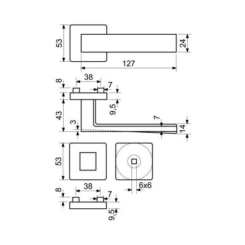 A felhasznált anyagok nagyfokú szilárdsággal és kopásállósággal rendelkeznek. Pontosan megmunkált élek. Acél rozetta szerkezet FIX IN rendszerben - a fogantyúk és a rozetták stabil csavarozása az ajtón keresztül. A kiálló anyák és vezető csavarok megakadályozzák a rozetta elfordulását.