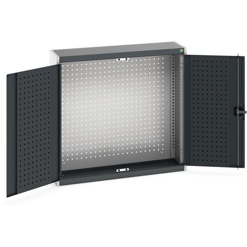 Függesztett fémszekrény perforált hátfallal. A szekrény perforált hátlapja szerszámtartók elhelyezésére (perfo típus) vagy műanyag dobozok felakasztására (zsalu típus). Szekrényajtó perforált belső oldallal szerszámtartók elhelyezésére ( perfo típusú). dobozok és szerszámtartók nem képezik a szállítás részét.