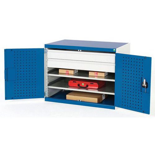 Műhely szekrény fiókokkal Bott Cubio, 100 x 105 x 65 cm, 2 polc, 1 fiók, szürke-kék Műhely szekrény fiókokkal Bott Cubio, 100 x 105 x 65 cm, 2 polc, 1 fiók, szürke-kék