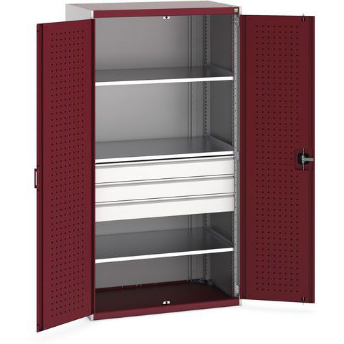 Fiókos műhelyszekrény Bott Cubio, 200 x 105 x 65 cm, 3 polc, 3 fiók, szürke-piros Fiókos műhelyszekrény Bott Cubio, 200 x 105 x 65 cm, 3 polc, 3 fiók, szürke-piros