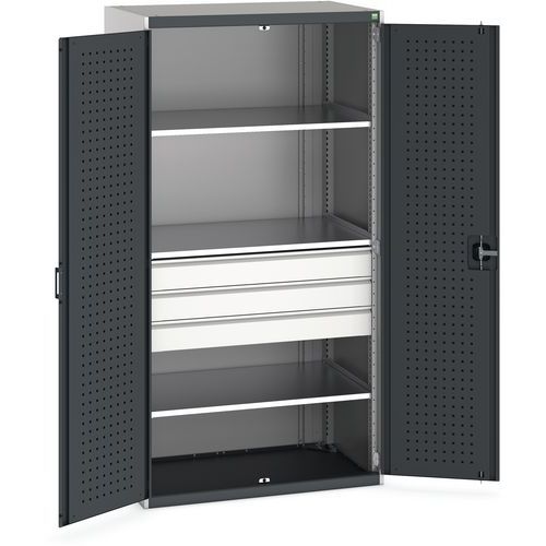 Műhelyszekrény fiókos Bott Cubio, 200 x 105 x 65 cm, 3 polc, 3 fiók, szürke-antracit Műhelyszekrény fiókos Bott Cubio, 200 x 105 x 65 cm, 3 polc, 3 fiók, szürke-antracit