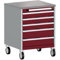 Bott Cubio mobil komód, 89 x 65 x 65 cm, 5 fiókos, linóleum, szürke-piros