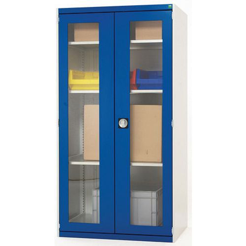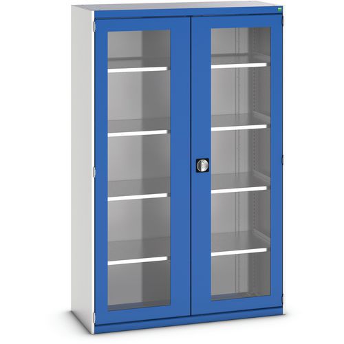 Műhelyszekrény átlátszó ajtókkal Bott Cubio, 200 x 130 x 52,5 cm, 4 polccal, szürke-kék Műhelyszekrény átlátszó ajtókkal Bott Cubio, 200 x 130 x 52,5 cm, 4 polccal, szürke-kék