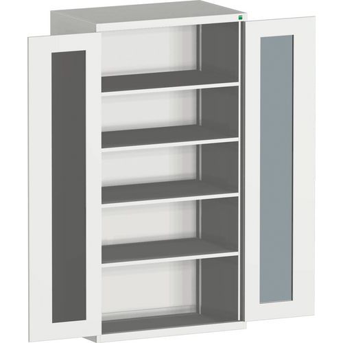 Műhelyszekrény átlátszó ajtókkal Bott Cubio, 200 x 105 x 65 cm, 4 polcos, szürke-szürke Műhelyszekrény átlátszó ajtókkal Bott Cubio, 200 x 105 x 65 cm, 4 polcos, szürke-szürke