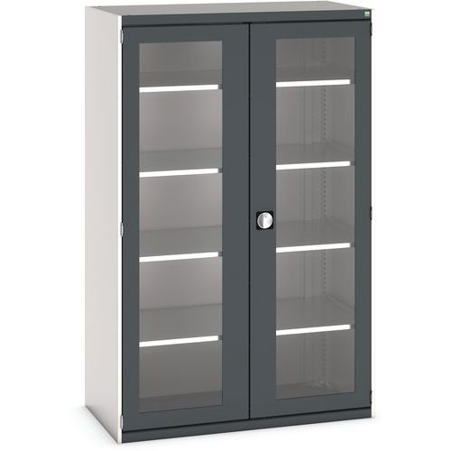 Műhelyszekrény átlátszó ajtókkal Bott Cubio, 200 x 130 x 65 cm, 4 polccal, szürke-antracit Műhelyszekrény átlátszó ajtókkal Bott Cubio, 200 x 130 x 65 cm, 4 polccal, szürke-antracit